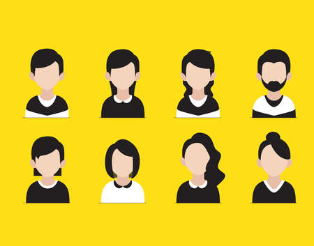 Social media avatar vector graphics flat icons. Set of hand drawn Avatar profile icon (or portrait icon), including male and female. User flat avatar icon, sign, profile people symbol.