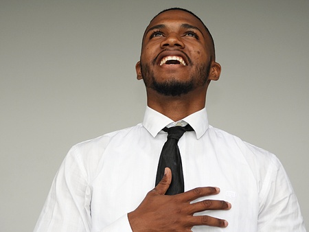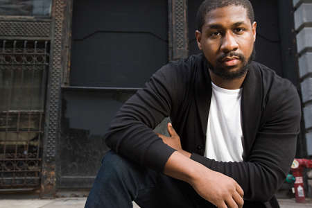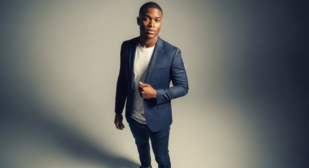 Handsome African-American man standing confidently against a vibrant purple backdrop.