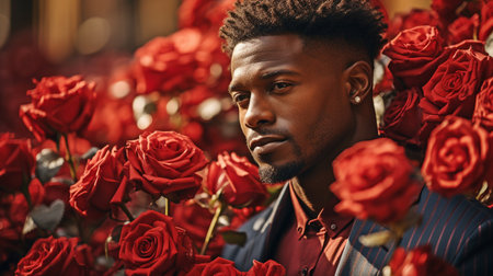 An AI generated illustration of A mature African-American man with a serious expression on his face, wearing a bright red sweater