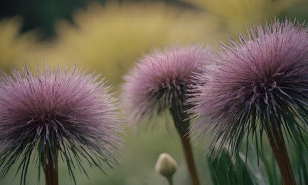 Flowering thistles close up in the garden. Selective focus.