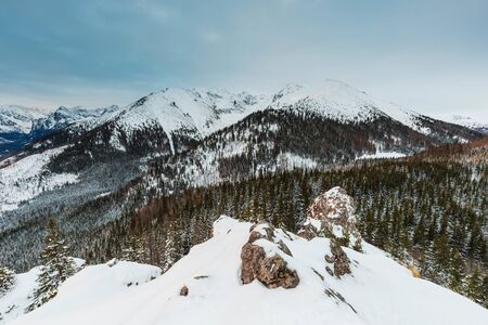 Polish Tatra Mountains in winter and snowy scenery.