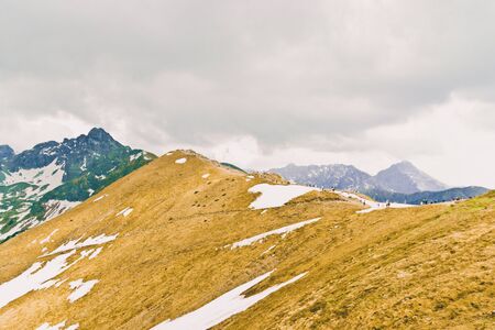 Beautiful panorama of green mountains hills with snow from Kars to Kasprowy Wierch in summer. Travel and tourism concept.