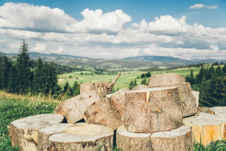 Large wooden logs in Carpathians forest