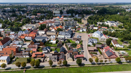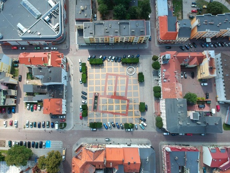 BIALOGARD, POLAND - 17 AUGUST 2018 - Aerial view on Bialogard city center with city square and town hall