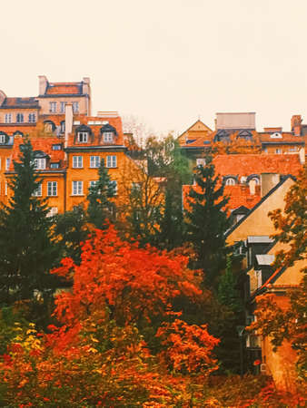 Tiled roofs of houses of the old city in Warsaw