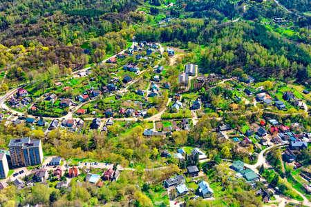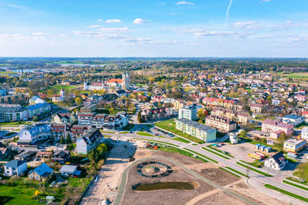 Aerial view of Birstonas city wich is located on the shore of Nemunas river in Lithuania. Its a small SPA resort