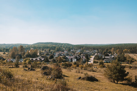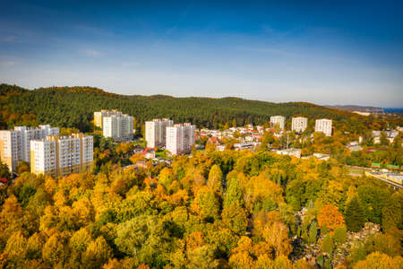 View from a loom city drone during sunny weather in autumn