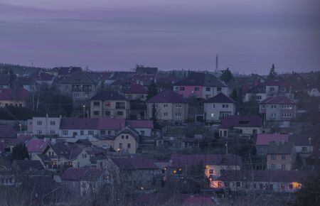 View over Vimperk town in winter dark cold evening in centre of national park Sumava