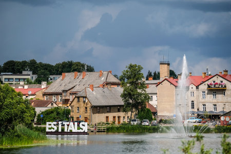 Talsi, Latvia - July 14, 2023: Town of Talsi, Latvia. Oldtown buildings exterior in summer