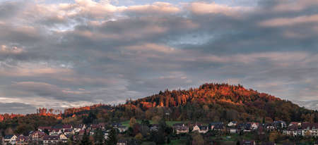 Sunset over a hill, the city in the shade