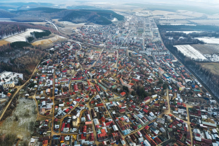 top view of village in mountains copy space