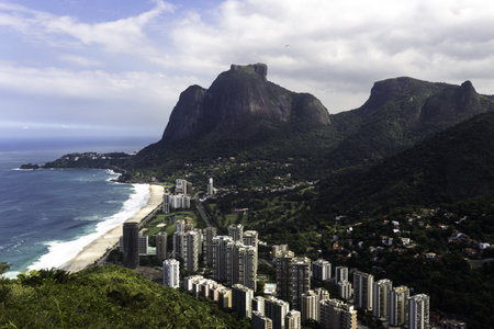 Two Brothers Mountain and Ipanema District Behind It in Rio de Janeiro, Brazil