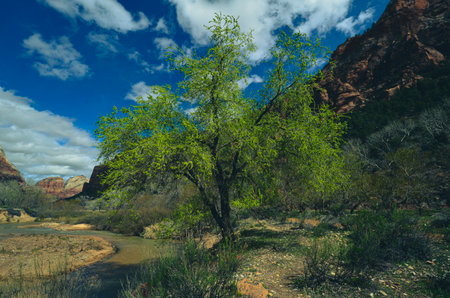 Zion Park, Springdale, Utah: Canyons landscape of the Virgin River at sunset.