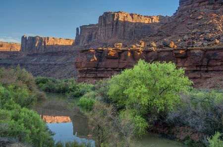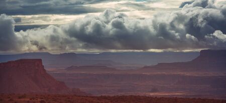 Scenic American Landscape and Red Rock Mountains in Desert Canyon. Springtime. Canyonlands National Park. Utah, United States. Nature Background.