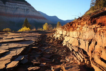 close-up of a fault line, with visible cracks and crevices, created with generative ai