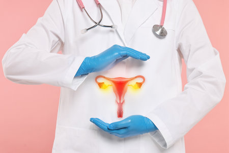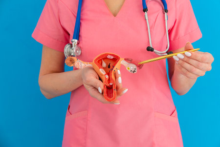 Doctor holding Uterus and Ovaries model. Ovarian and Cervical cancer