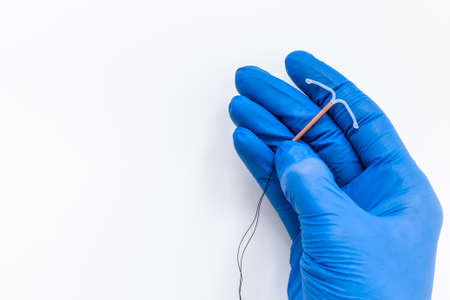 T-shaped intrauterine contraceptive device in gynecologist hand