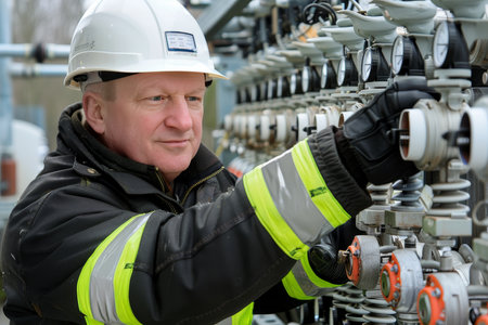 Managing Water Flow: The Intricate Network of Pipes and Valves Governed by a Skilled Asian Engineer. Concept Water Infrastructure, Pipe Network, Valve System, Skilled Engineer, Asian Expertise