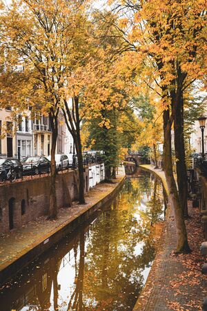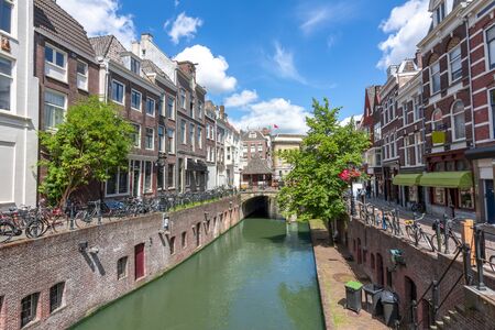 Canal in Utrecht, Netherlands. Old Dutch houses along the canal