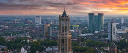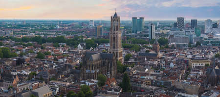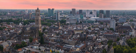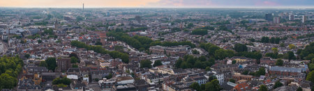 Aerial View of Utrecht with Dom Tower and Sunset Cityscape