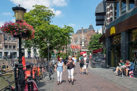 City centre and tourist hotspot of Utrecht with tourists and locals by the city's famous canals