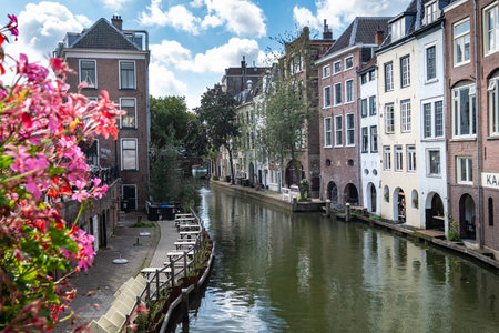 Utrecht, Netherlands - August 09, 2022: Traditional houses along a canal in Utrecht