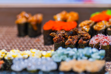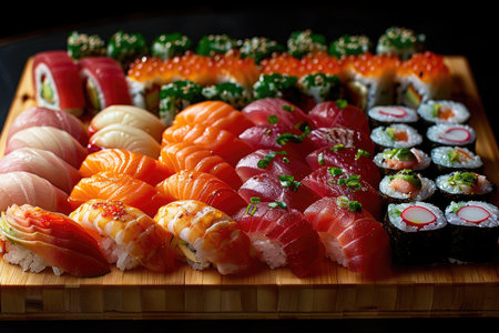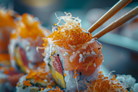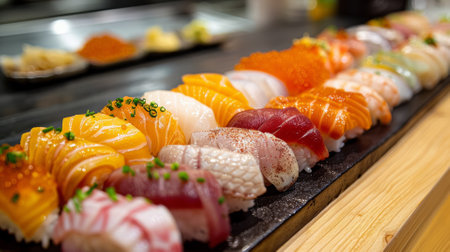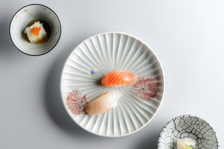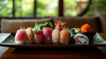 A Fresh sushi on traditional dish with vibrant colors and textures