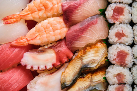 Photograph of assorted sushi