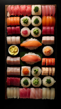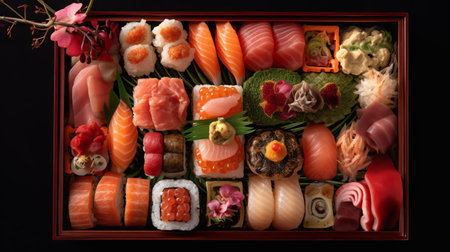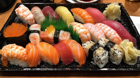 Generative AI Image of Fresh Authentic Japanese Mixed Sushi Set at Traditional Restaurant