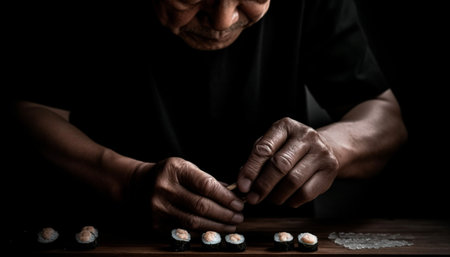 Japanese Omakase Style, close up chef making tuna sushi. Japanese traditional luxury meal.