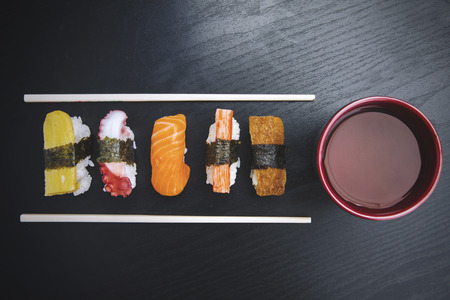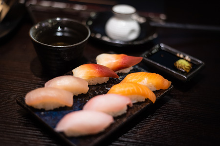 Nigiri sushi japanese food style - selective focus shot - process soft effect style pictures