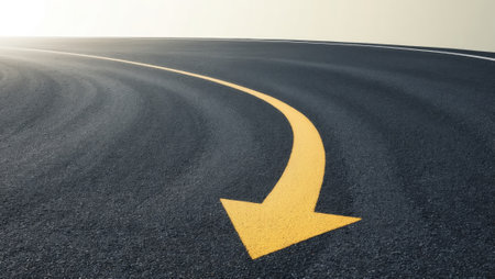 AI Generated. A conceptual image featuring an asphalt road with a direction arrow