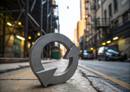 This captivating image showcases a dynamic, 3D grey loop circle arrow symbol, perfectly suited for representing concepts of refresh, reload, or recycling. The symbol's sleek, three-dimensional form and subtle dropped shadow create a powerful visual metaphor, hinting at ongoing processes and cyclical renewal. Captured in the distinctive style of urban exploration photography, the image evokes a sense of discovery and hidden potential. The grey palette adds a touch of sophistication and neutrality, making the symbol universally appealing. The arrow's continuous loop suggests a never-ending cycle of activity, representing the iterative and ongoing nature of processes like updating software, refreshing web pages, or the continuous circularity of recycling. The image's composition is skillfully framed, drawing the viewer's eye to the central symbol and its subtle shadow play. The urban exploration backdrop adds context, placing the symbol in a tangible and intriguing setting. This image is ideal for websites focused on technology, sustainability, and design, where a clean, modern, and evocative visual element is needed to convey concepts of progress and renewal. Its versatility allows for use in various contexts, from website buttons and icons to print media, adding a touch of visual sophistication to any presentation. The abstract nature of the symbol allows for a broad interpretation, encouraging viewers to connect with the image on a personal level and contemplate the underlying themes of renewal and progress.