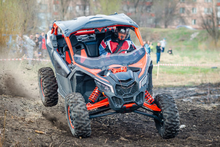 ATV, UTV, buggy, 4x4 off-road vehicle in the mud and dust. Extreme, adrenalin