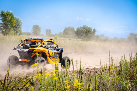UTV buggy and 4x4 in an action. Rally, extreme, adrenalin