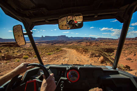 Off road vehicle views of Moab Utah trails on bright sunny days