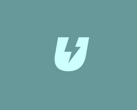 Abstract letter U icon. Dynamic unusual font. Universal fast speed fire moving quick energy icon. Flash vector icon. Rapid thunderbolt superhero t shirt print, apparel fashion tee symbol