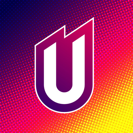 Abstract colorful letter U on halftone background. Vector design template element for your identity or application