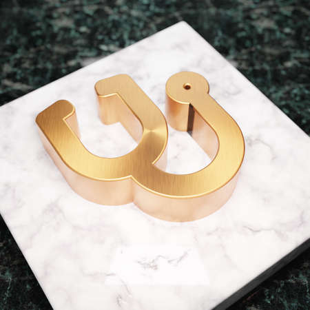 Stethoscope icon. Bronze Stethoscope symbol on white marble podium. Icon for website, social media, presentation, design template element. 3D render.