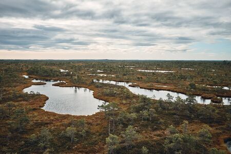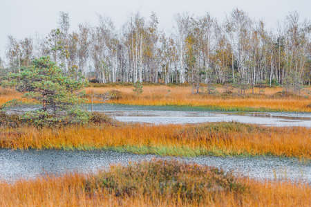 Autumn landscape in the swamp. Beautifull view of the swamp Elnya Belarus