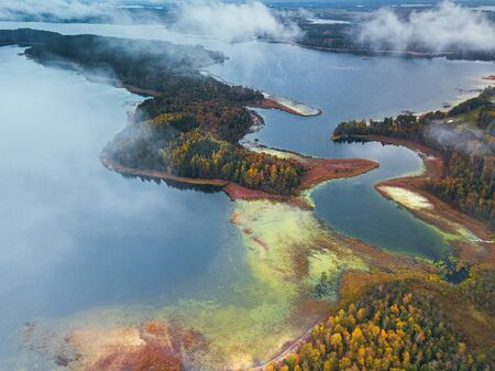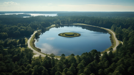 Generative AI : Aerial view of Lake Uhtjarv with woody shores in autumn time in Urvaste Estonia
