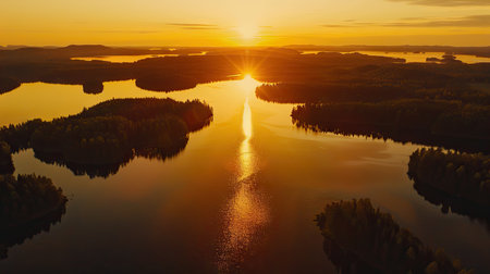 Aerial photo of National Park Braslau Lakes; Belarus after sunset
