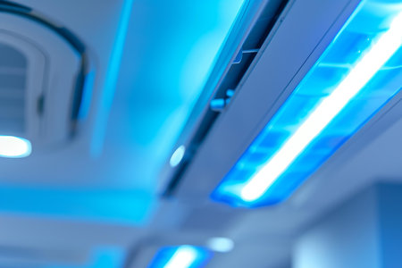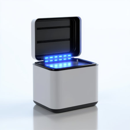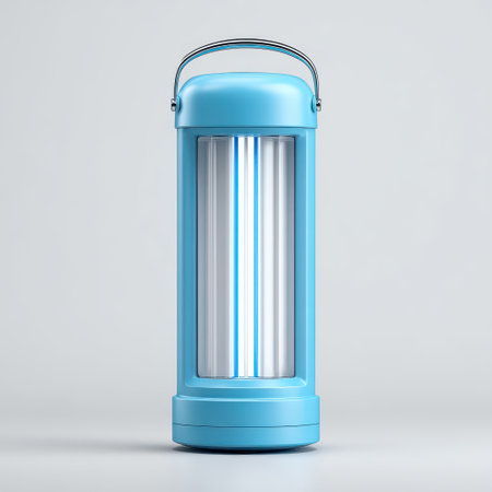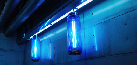 A high-tech sterilization device emitting vibrant blue ultraviolet rays, designed for efficient sanitation in healthcare, laboratories, and cleanrooms