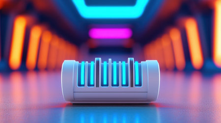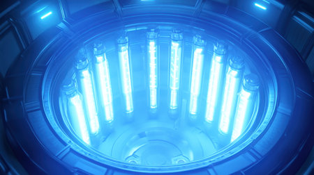 Captivating futuristic image featuring blue light tubes arranged in a circular design, creating a vibrant and high-tech atmosphere perfect for science fiction scenarios.