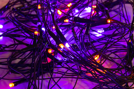 Multicolor LEDs light hang on the cable. Festival concept. By generative Ai