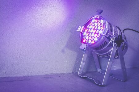 Led stage lights shining in purple smoke