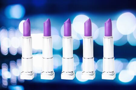 vivid red lipsticks against blurry background with bokeh lights. beauty and fashion trends