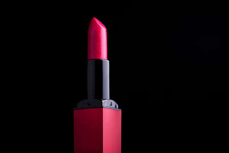 Matte pink lipstick without a cap on blackbackground. Perfect glamorous photo.