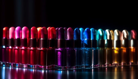 A vibrant collection of beauty products in a row, generated by artificial intelligence