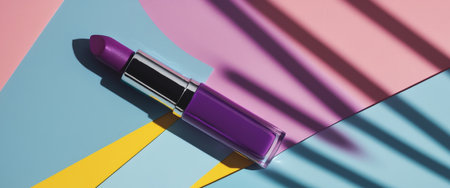 AI Generated. Vibrant Purple Lipstick on Colorful Background with Dramatic Shadows
